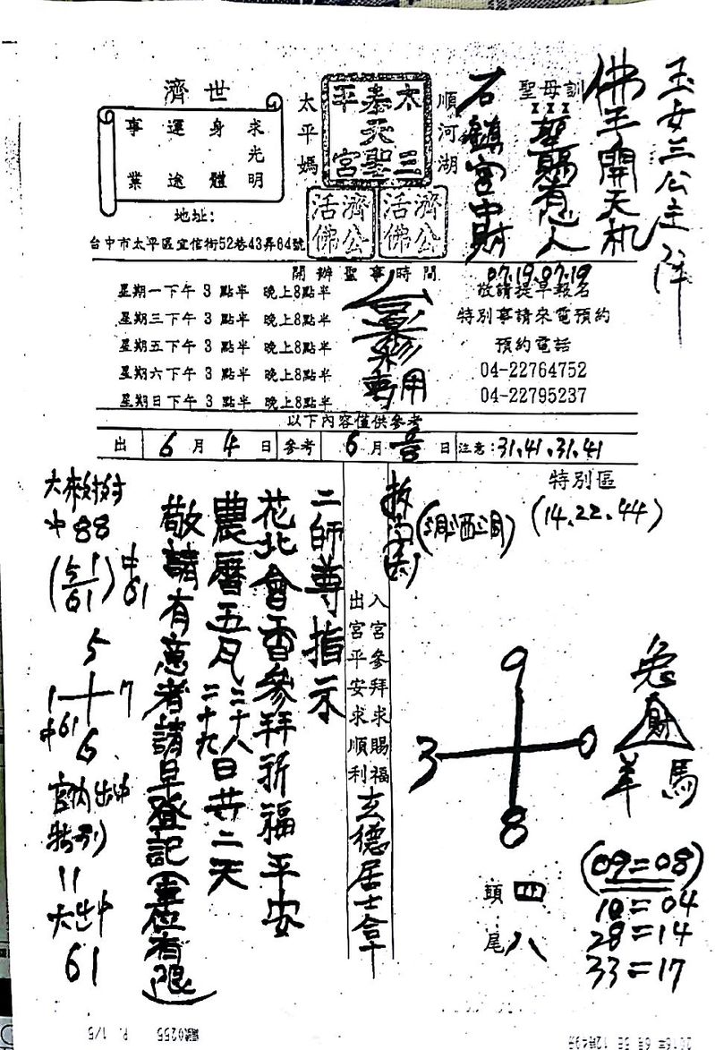 加州天天樂 2020/10/06 Usagi 九宮 精選低機號碼 供您參考