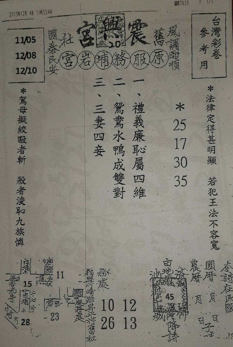 今彩539 2020/11/17 Usagi 精選3碼 全車 供您參考