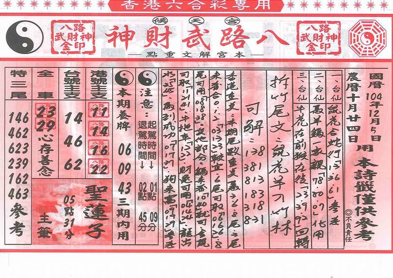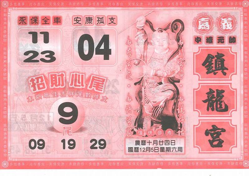 今彩539 2020/10/06 Usagi 九宮 精選低機號碼 供您參考