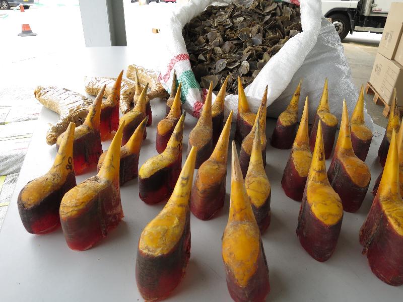 這批走私物的形狀相當特殊,上圖紅色的部分觸感紮實,尾端是黃色尖銳突起物相當罕見,下圖則時經過加工後變得較小。