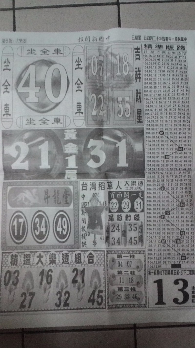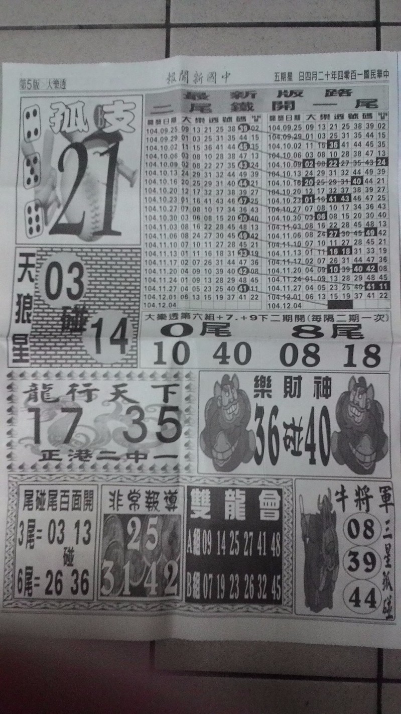今彩539 2020/10/06 台北鐵報分享 供您參考
