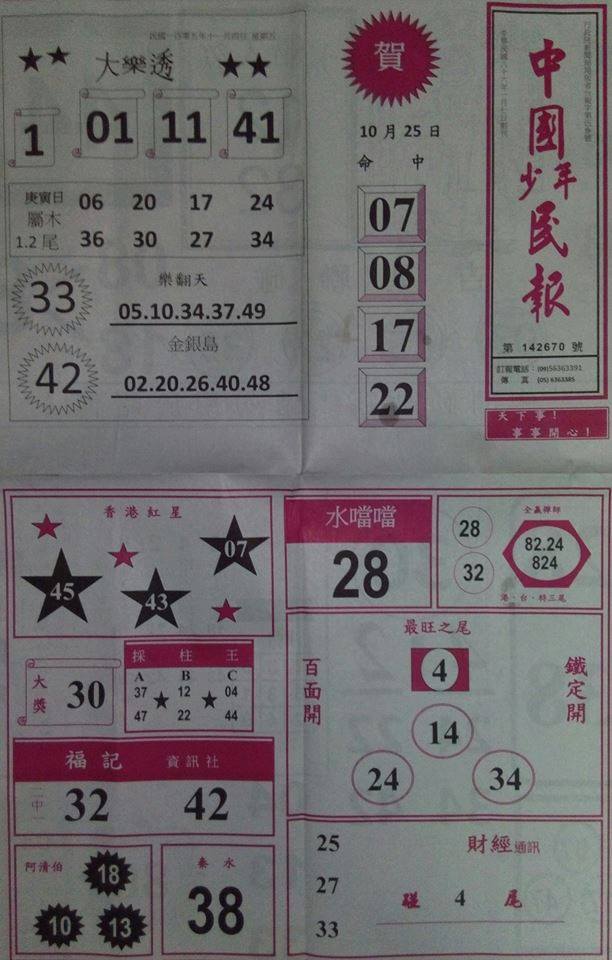 今彩539 2020/10/10 台北鐵報分享 供您參考