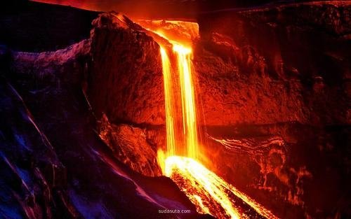 菲律賓的馬榮火山熔岩噴發,岩漿如瀑布一般湧出,飛流而下。