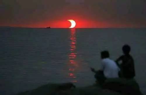 日落和日食一起出現,我和男友一起看見,哪裡還有比這更浪漫的事呢~
