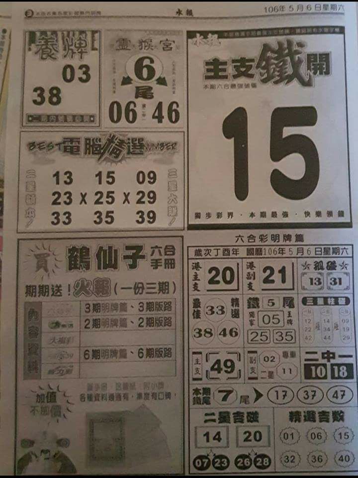 今彩539 2020/10/06 台北鐵報分享 供您參考