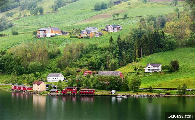 在清晨的細雨中翡翠公主號退出蓋朗厄爾峽灣后,到達深入挪威中部的Sogn og Fjordane峽灣深處的小山村——Olden(歐登)。