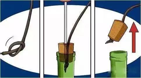 4、取出鋼針,用力將帶子向外拔,帶動軟木塞一起被拔出。
