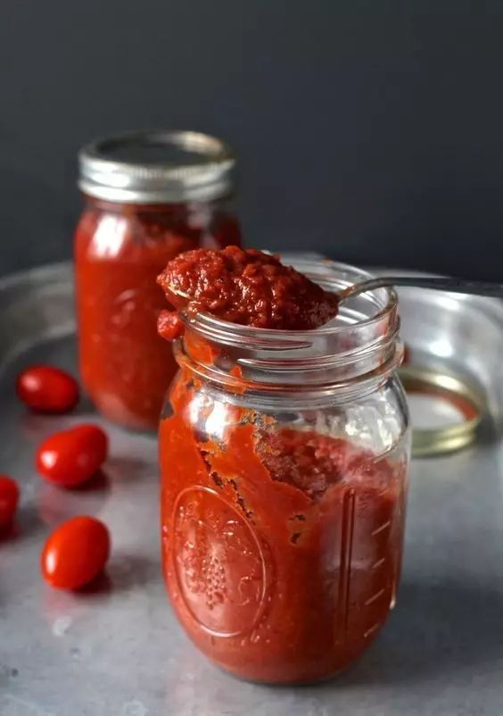 6、轉小火慢燉1.5個小時,番茄醬會變得濃稠,等醬汁涼下來,裝罐子裡隨時吃都可以。
