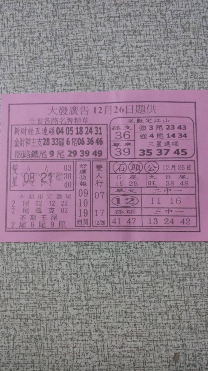 今彩539 2020/10/07 台北鐵報分享 供您參考