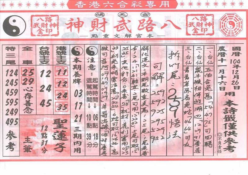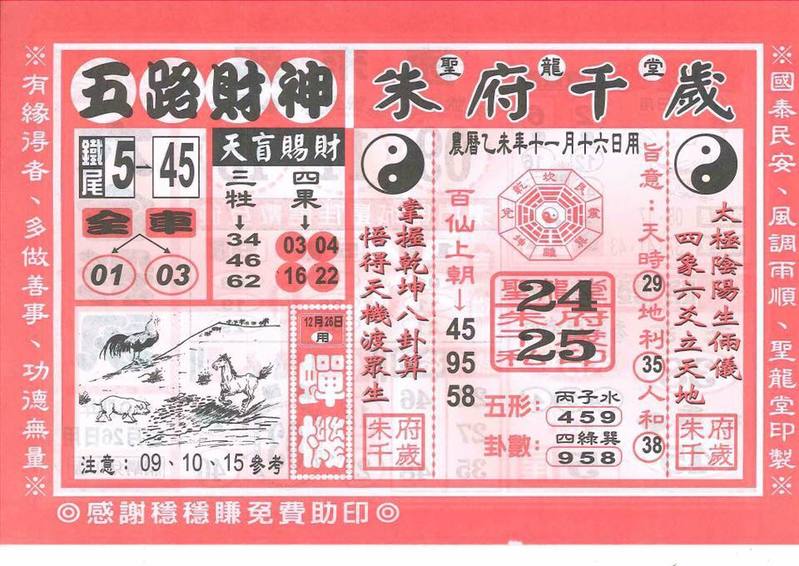今彩539 2020/10/07 台北鐵報分享 供您參考