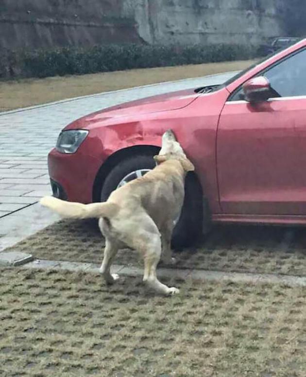 只見漂泊狗領先上前,正用牠的牙齒,冒死啃咬車輪上方的外殼,估量就是瞅准了車子的單薄部位,要給車主一個狠狠的還擊!