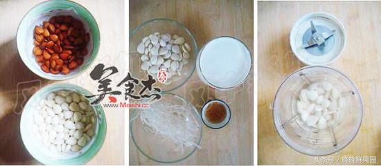 1.將杏仁在溫水中浸泡半天后將外皮剝去