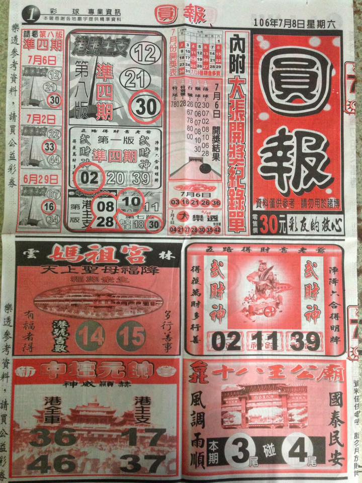 今彩539 2020/10/10 台北鐵報分享 供您參考