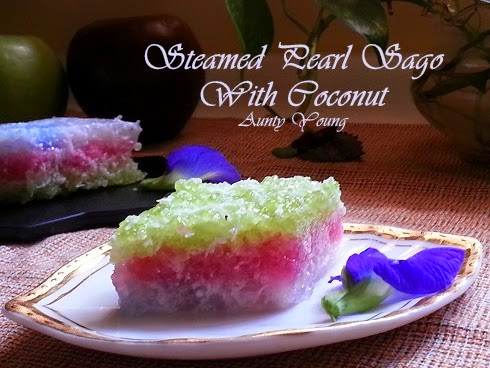三色沙穀米糕(Steamed Pearl Sago With Coconut)