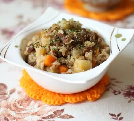 3、米洗凈瀝干水分,放入電鍋中,加入切好的雞肉、香菇、胡蘿卜、筍、高麗菜等,併入醬油、鹽、糖、酒、麻油、橄欖油、浸香菇的水及高湯拌勻,煮成飯後趁熱拌松,即可食用。