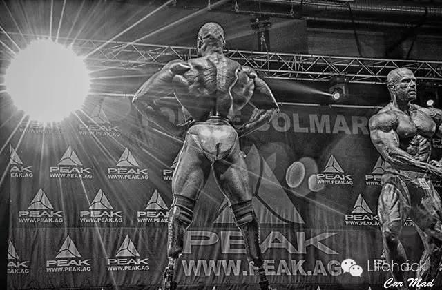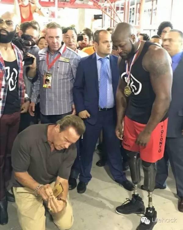 有一次參賽期間傳奇人物施瓦辛格竟然這樣給他拍照可見對他的敬佩