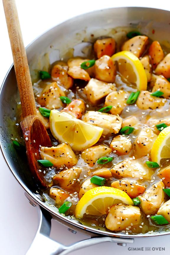 再將剪好的雞塊倒入檸檬汁當中,無需炒制太久大約2分鐘,出鍋前蔥花撒入其中。