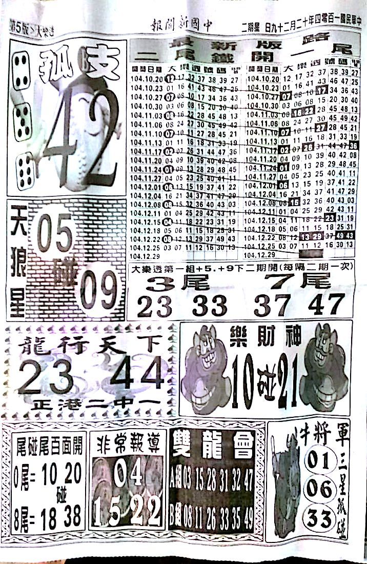 今彩539 2020/12/07 Usagi 精選獨支 全車 供您參考