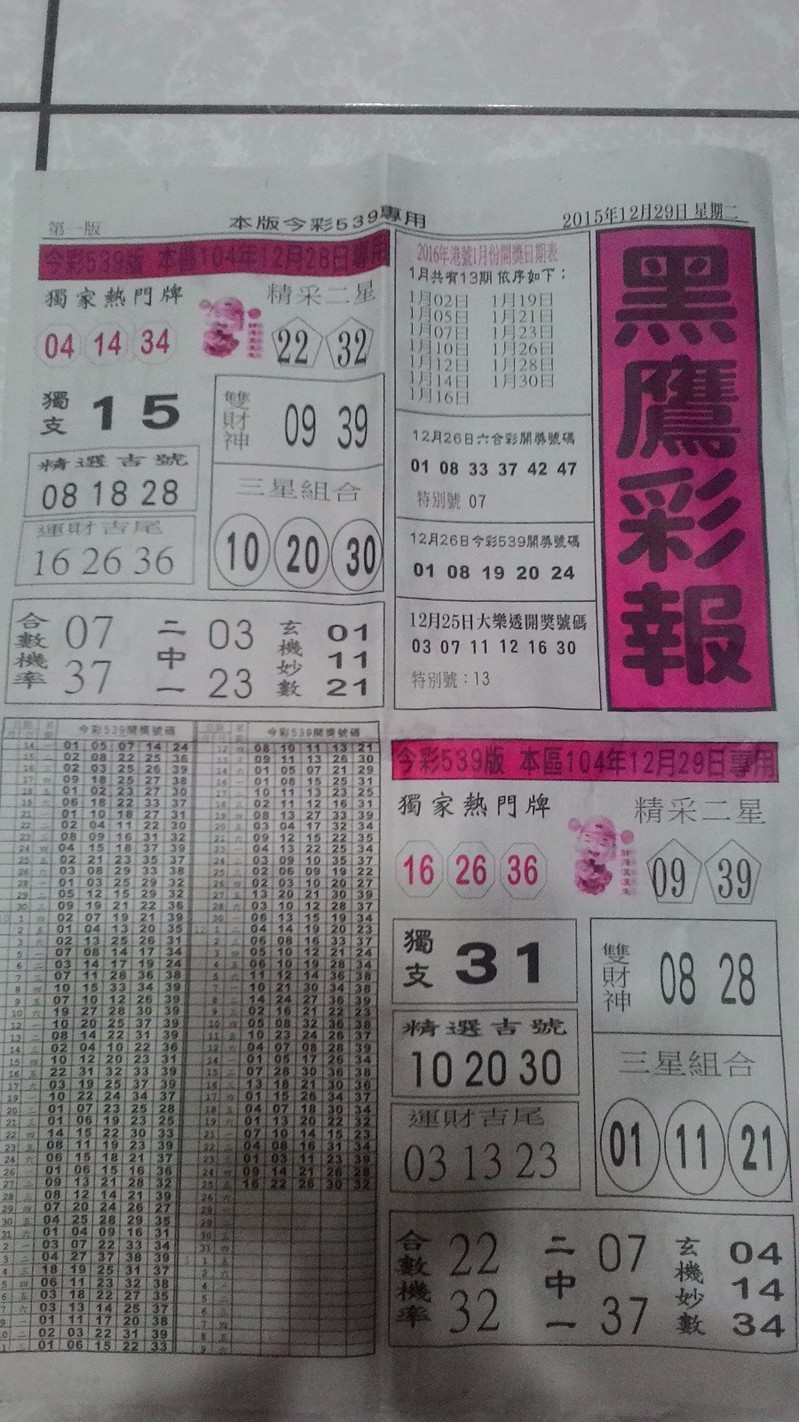 今彩539 2020/10/05 吉祥報分享 供您參考