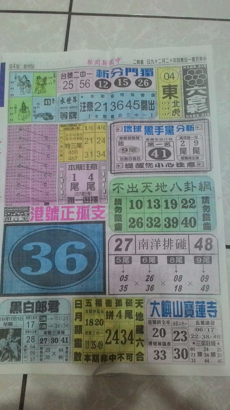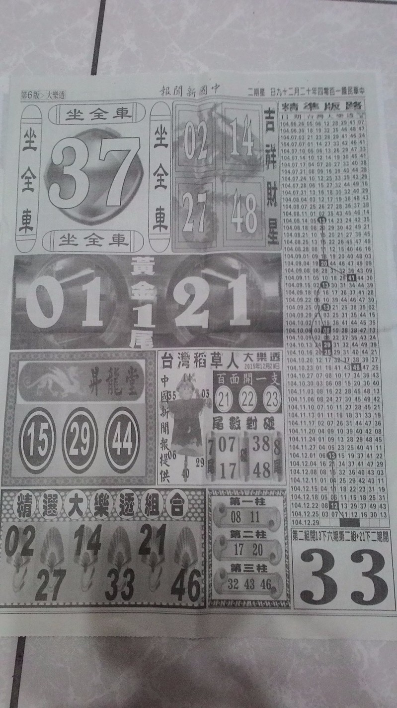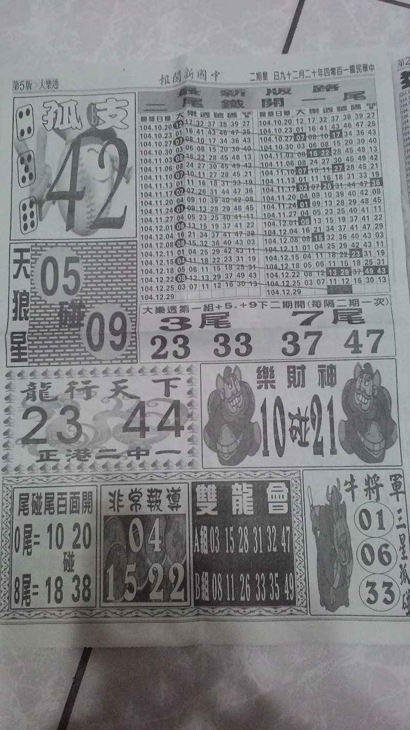 今彩539 2020/10/06 吉祥報分享 供您參考