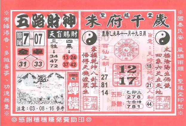 今彩539 2020/10/07 台北鐵報分享 供您參考