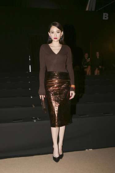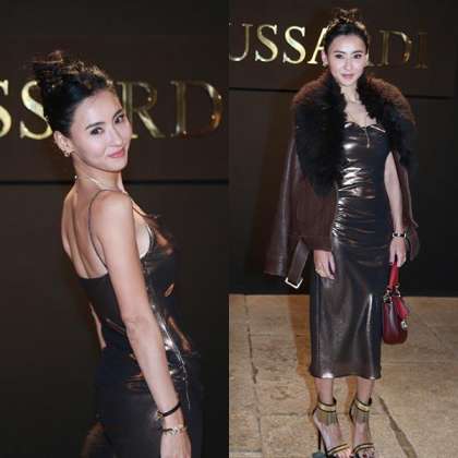 張柏芝身穿修身皮弔帶裙搭配皮草夾克,腳踩流蘇高跟涼鞋,盤起長發的她貴婦范十足!
