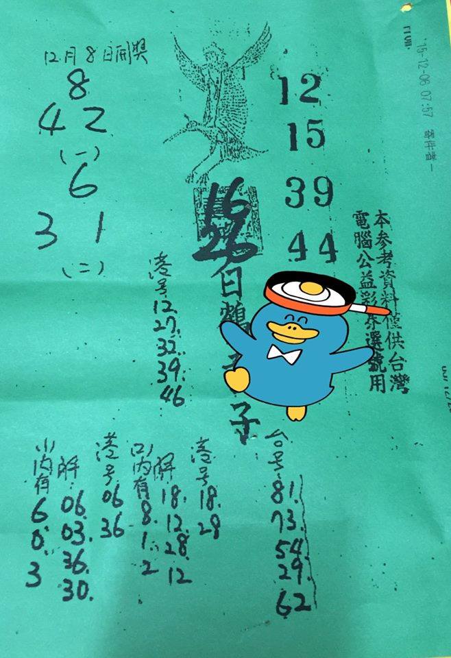 今彩539 2020/12/07 Usagi 精選獨支 全車 供您參考