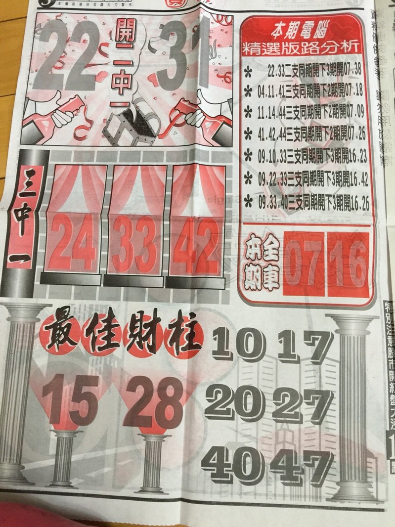 今彩539 2020/10/07 台北鐵報分享 供您參考