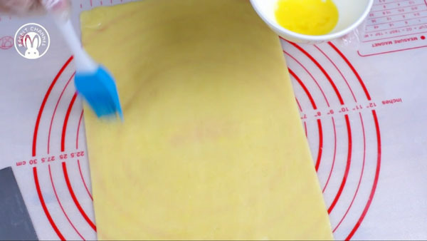 4.刷一層蛋液(份量外),在上面鋪滿瓜子仁,整理均勻;