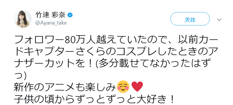 竹達彩奈是日本非常著名的女性聲優,前不久她為了紀念推特粉絲數量超過80萬特意放出曾經COS成《魔法少女小圓》鹿目圓的照片。這條推文引來了好姬友悠木碧。這一次竹達彩奈居然豪爽地表示可以讓她揉歐派,我們就一起來看看這究竟是怎麼一回事吧。