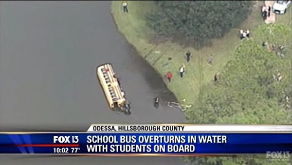 2015年一個秋日下午2點半,瑪麗·布萊恩特小學(Mary E. Bryant Elementary School)的校車滿載放學的孩子駛在路上。剛經過一個社區大門,這輛已經開了21年的老車瞬間失控,先是撞上一棵大樹、撞碎了前窗,又撞到另一棵樹,隨後直接掉入了水深1.2公尺的池塘——由於鱷魚出沒,這裡嚴禁游泳和垂釣。