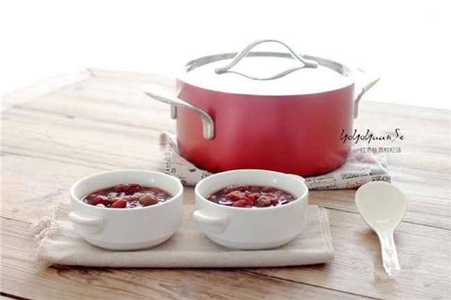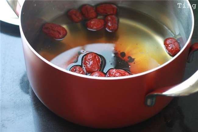 3、然後把紅棗、紅糖和水加入鍋子里。
