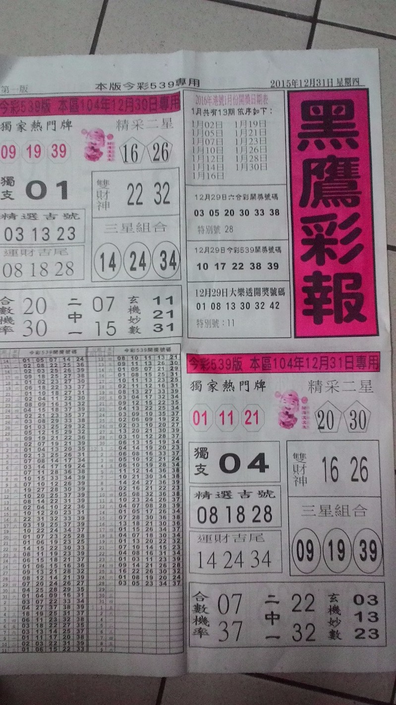 今彩539 2020/10/06 吉祥報分享 供您參考