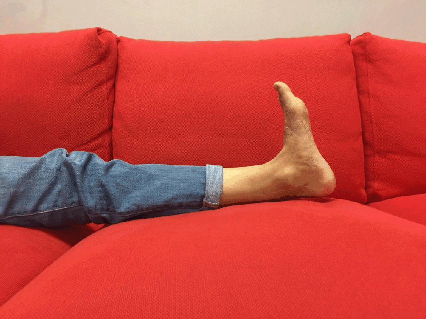 雙膝自然伸展,用盡全力勾腳10秒鐘後再用盡全力綳腳,反覆進行,在不引起疼痛的前提下不限次數,越多越好。