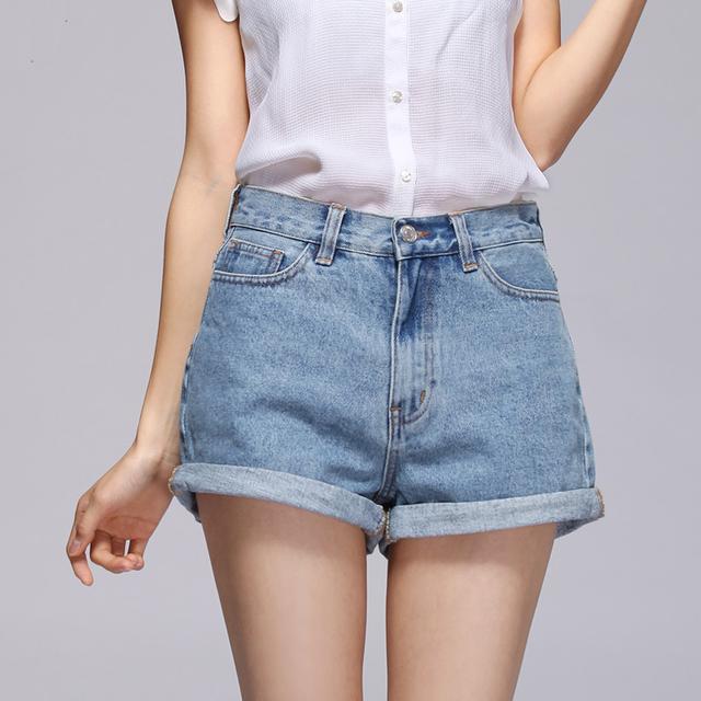 ▲經典卷邊百搭時尚適合各種搭配,淺藍色調更佳顯清爽,高腰的設計顯瘦收腰提臀性感,復古休閒的短褲挺適合學院或者街頭的穿著,也夾雜著韓飯的氣質