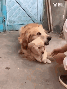 朋友不死心,非要跟小狗握手,大狗直接趴在地上摟著小狗:你不是要握手嗎?給!要握和我握!