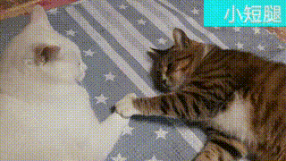 看看這睡覺都要牽著小手,怎麼也不肯分開的兩只貓咪。多麼的相親相愛啊。