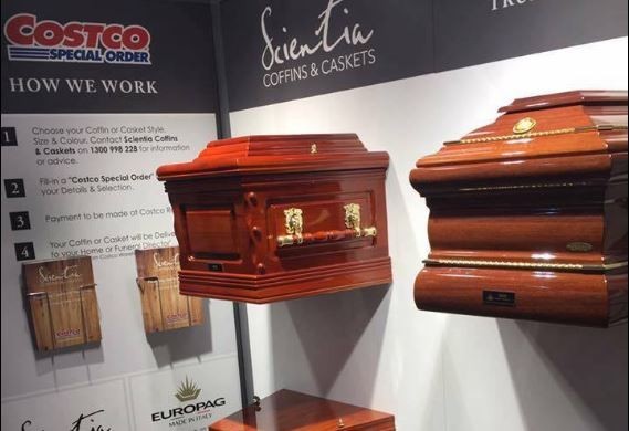 沒錯,你沒看錯,在澳都墨爾本東區的Ringwood,好市多是有在賣棺材的,而且還是知名品牌Scientia的棺材呢!製造商表示,如果在賣場購買,價格只是殯儀館的一半,可說是相當劃算喔~不過在台灣應該會賣得不好吧…。
