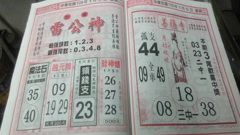 今彩539 2020/10/05 台北鐵報分享 供您參考
