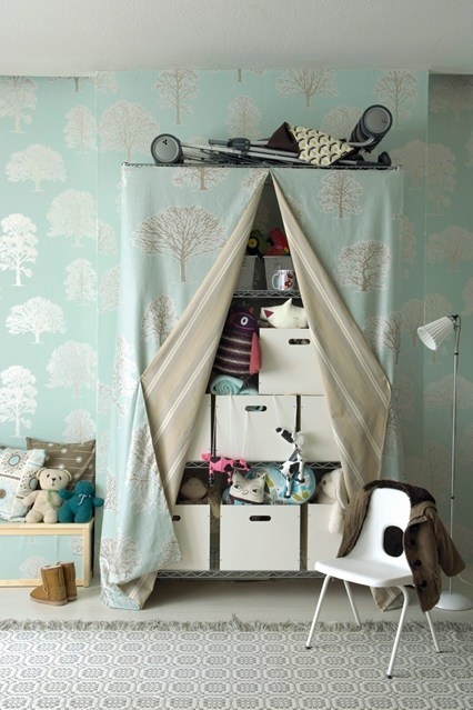 18.用和壁紙一樣或類似的布蓋住雜亂的櫃子: