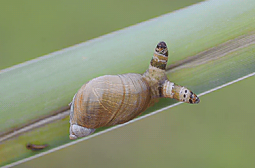 “雙盤吸蟲”在寄生到蝸牛身上後會迅速侵入蝸牛的眼柄(就我們所看到的蝸牛觸角,一碰就縮回去的那個),並形成一種像不斷跳動的毛毛蟲的外觀。這在生物學上被稱為攻擊擬態,即一種器官假扮成另一種器官以引誘獵物。接下來,雙盤吸蟲會控制蝸牛的大腦,並使蝸牛在白天暴露於植物頂端,從而引起飢餓鳥類的注意。