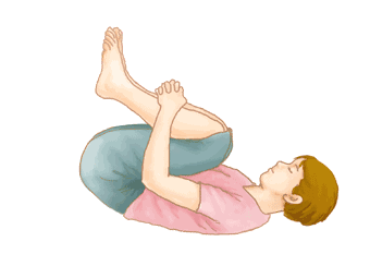 2、躺在地上,兩腳屈膝,兩手環抱住小腿,抬頭收腹拱背,身體往後從尾椎、腰椎、胸椎一節一節碰觸地面,如此前後滾過來滾過去。