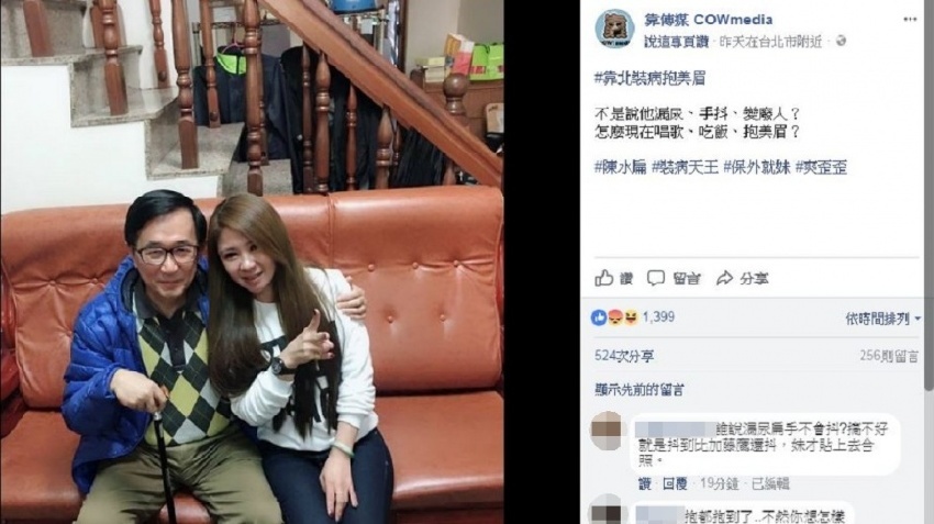 日前,臉書《靠傳媒》在粉專PO出一張陳水扁和長髮女子的合照,