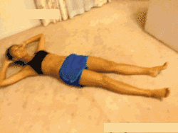 平躺在瑜伽墊上,雙手扶在頭部兩側,雙腿屈膝向上抬起,保持背部挺直,腹部發力,使雙腳做踩空中自行車的動作,同時兩手肘交替向前,觸碰向上抬高的反向膝蓋。此動作反復進行30次,並循環2組。