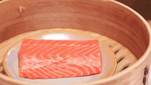 1. 蒸鍋中燒開水,將三文魚放入蒸鍋,大火蒸5分鐘