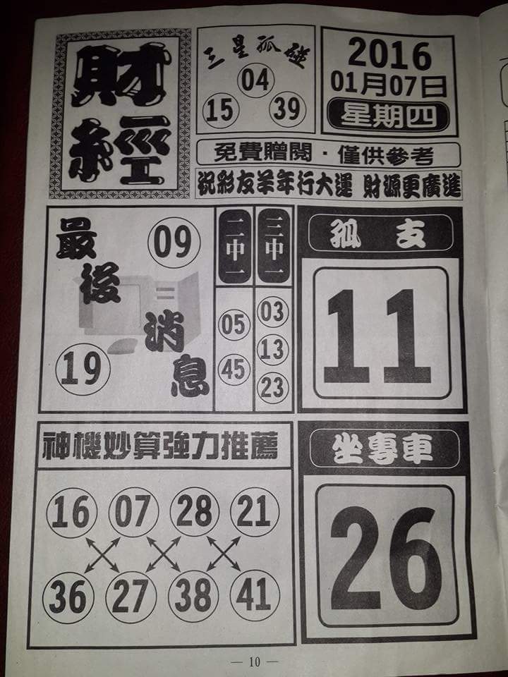 今彩539 2020/10/07 台北鐵報分享 供您參考