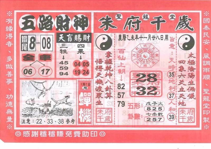 今彩539 2020/10/05 Usagi 九宮 精選低機號碼 供您參考