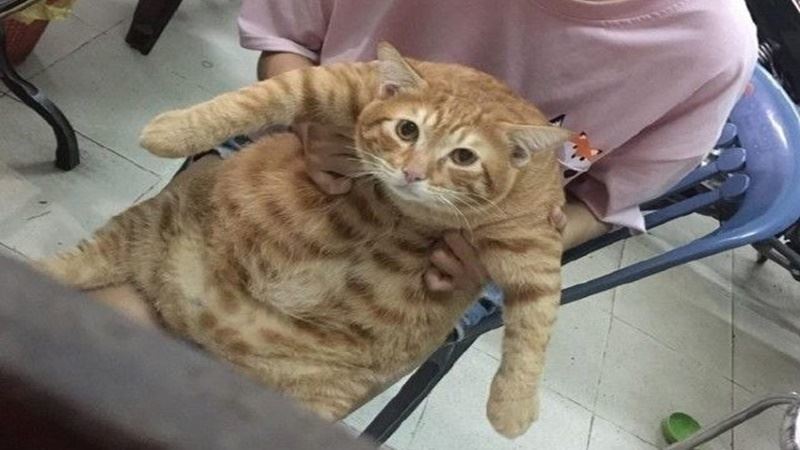 大排檔遇到一隻橘貓,朋友抱起它後,忍不住笑噴:這貓打激素了吧
