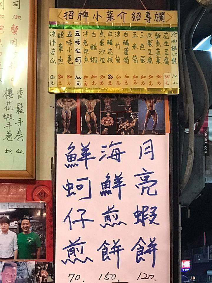 ▼因為這間店的老闆不只廚藝好,還是健身愛好者,牆上菜單之間的空白處都貼著健美肉感的照片。一邊吃美食一邊欣賞健美先生的英姿,真是別樣的享受。