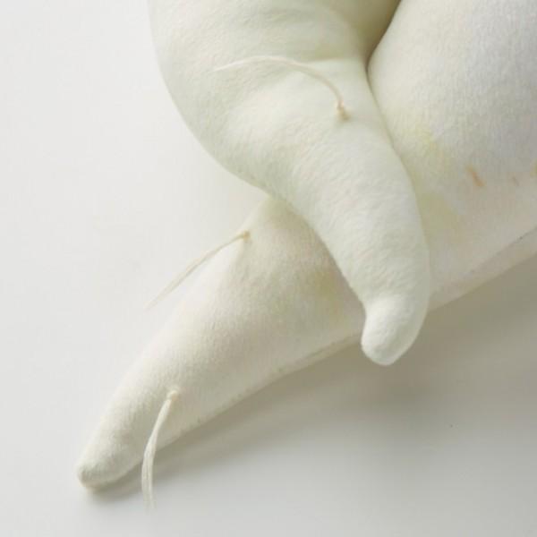 同時這一款大根抱枕,在蘿蔔的蒂頭上和蘿蔔上部會微微泛青的部分都相當擬真,材質是聚酯纖維和混聚氨酯,商家特別打造出柔軟且有彈性的材質,讓人抱起來更加舒服。